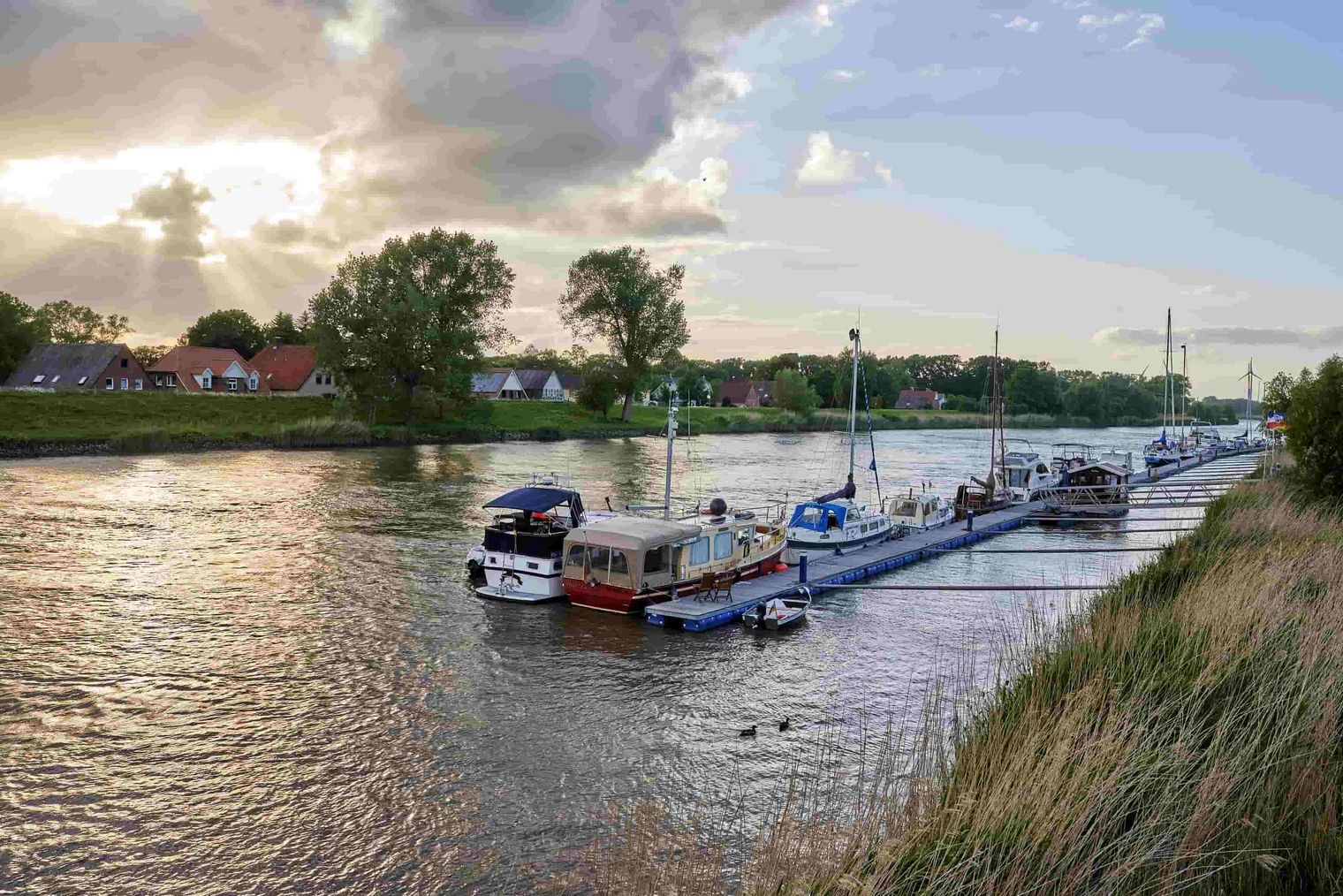 Über 150 km schlängelt sich die Oste an grünen Deichen, dichtem Schilf, Weiden und Obstgärten an idyllisch, maritim geprägten Dörfern und kleinen Häfen vorbei in Richtung Elbe und Nordsee. Hier findest du noch ruhige, unaufgeregte dörfliche Strukturen in einem natürlichen Umfeld.