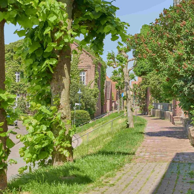 Das beschauliche Neuhaus ist eine frühere, kaiserliche Kreisstadt und besitzt einen sehr gut erhaltenen, historischen Ortskern. Die geschichtlich anmutende Deichstraße – mit der zum Teil ungewöhnlichen Bebauung direkt auf dem Deich – strahlt mit dieser besonderen Bebauung eine ganz eigene Ruhe und Gemütlichkeit aus.